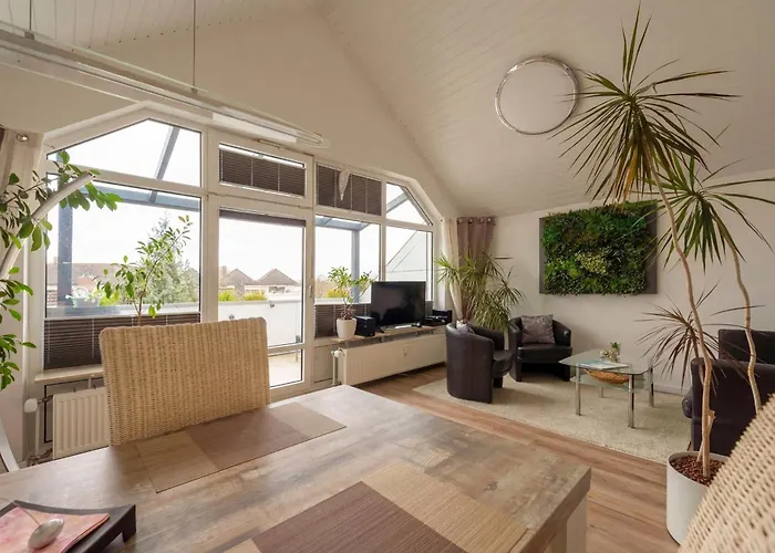 Om van uw vakantie in Bad Zwischenahn te genieten, verblijf in Ammerblick Suite - Sauna, Ausblick & Top-Lage Bad Zwischenahn van 60 m², gelegen op 2 km van het Park der Gärten en op loopafstand van 9 minuten van het Dr. Schuessler Haus. Draadloos internet en een privéparkeerplaats behoren tot de benodigdheden die gasten tot hun beschikking hebben.